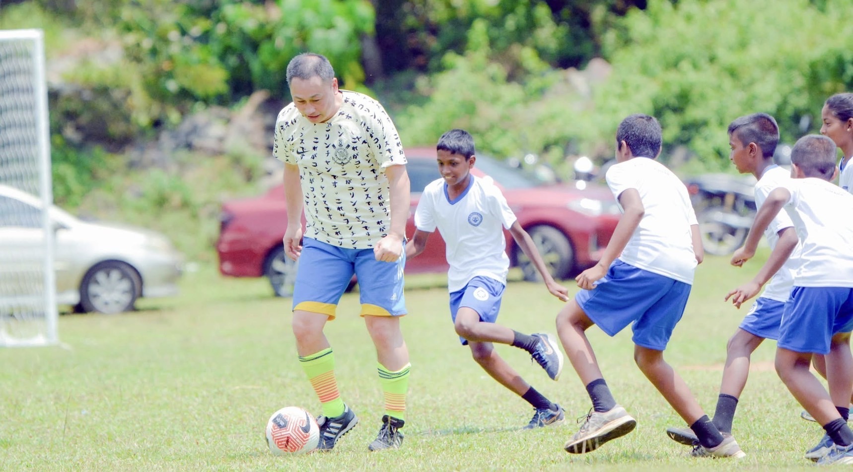 昨年、2回目のスリランカ訪問を果たしました。今回の目的は、コロンボ郊外の学校でのサッカーによる仏教支援活動です。以前コロンボでお会いしたシターラ氏がアテンドしてくださり、現地のライオンズクラブの協力のもと、サッカーゴールの設置やユニフォーム、ボールの支給が実現しました。